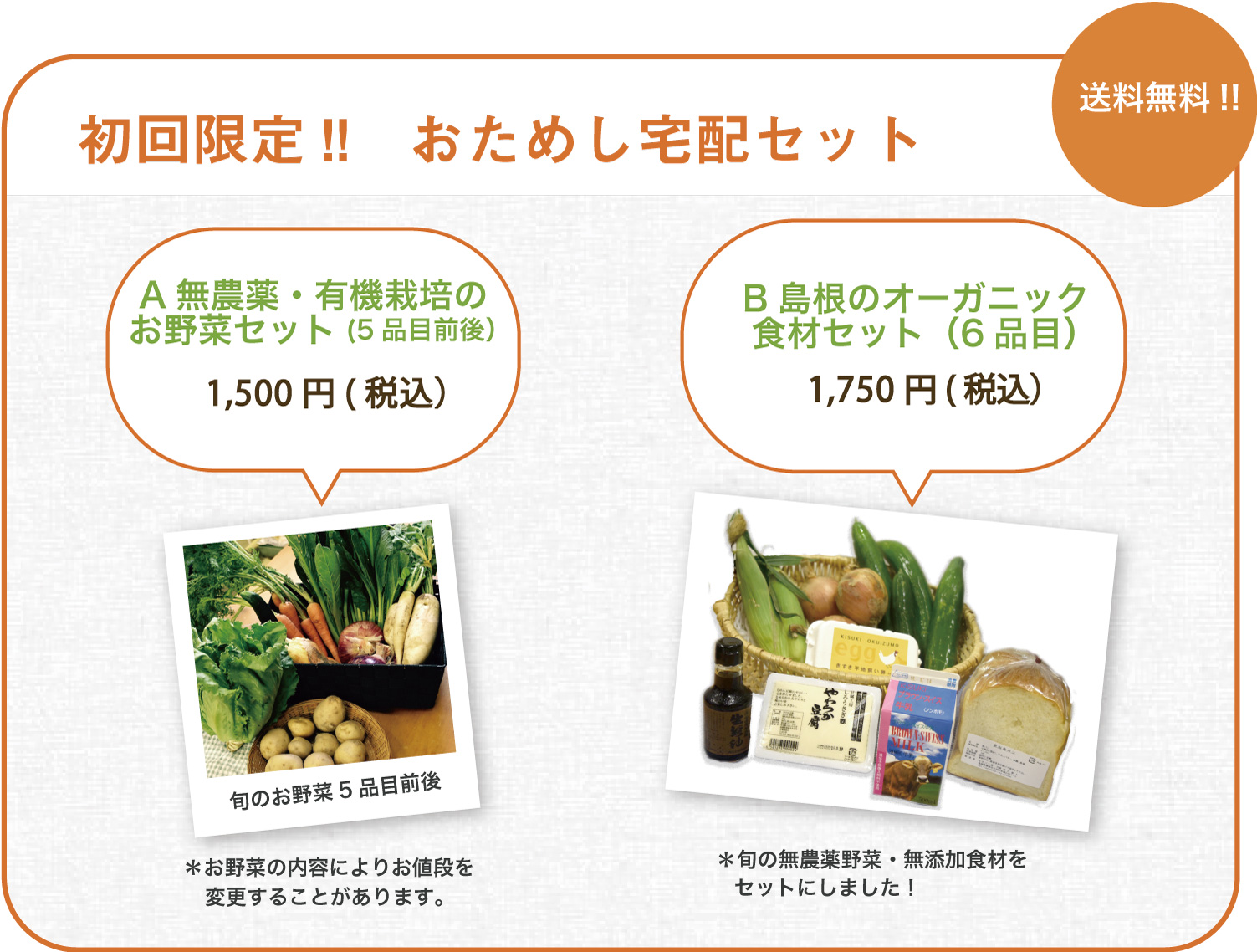 お試しセットご購入のお申込みは電話またはメールにて承ります。
